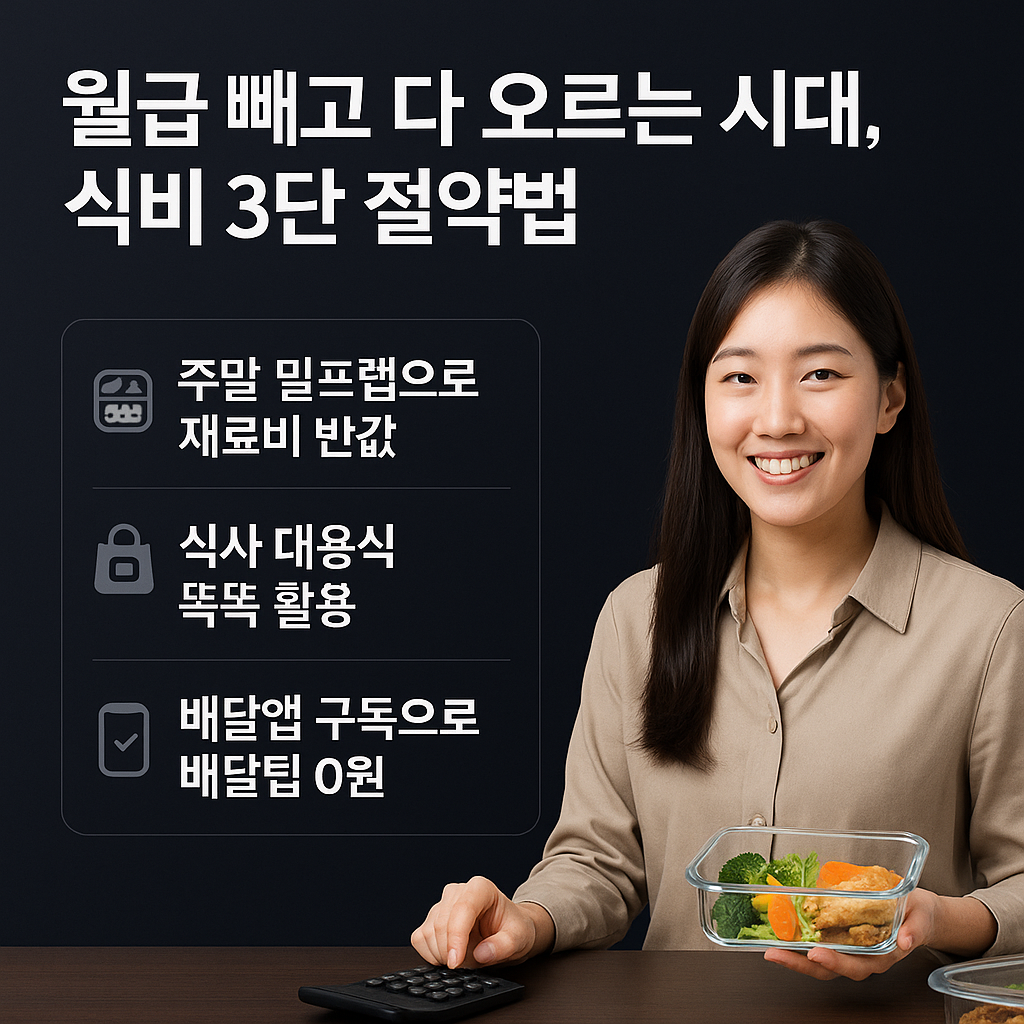 치솟는 외식 물가에 지치셨나요? 요즘 가장 핫한 식비 절약 방법 3가지를 소개합니다. 밀프렙, 식사 대용식, 배달앱 구독 서비스를 활용해 당신의 지갑을 지키는 현실적인 노하우를 확인해 보세요.