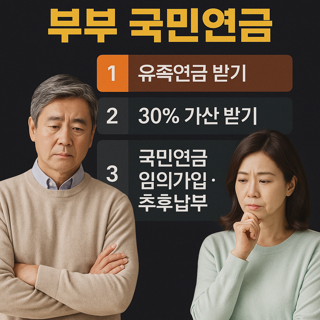 부부 국민연금 시대, 유족연금과 연금 맞벌이 전략을 실제 사례로 풀어 설명합니다. 노령연금 비교, 유족연금 선택 기준, 임의가입과 추후납부제도까지 한 번에 정리합니다.