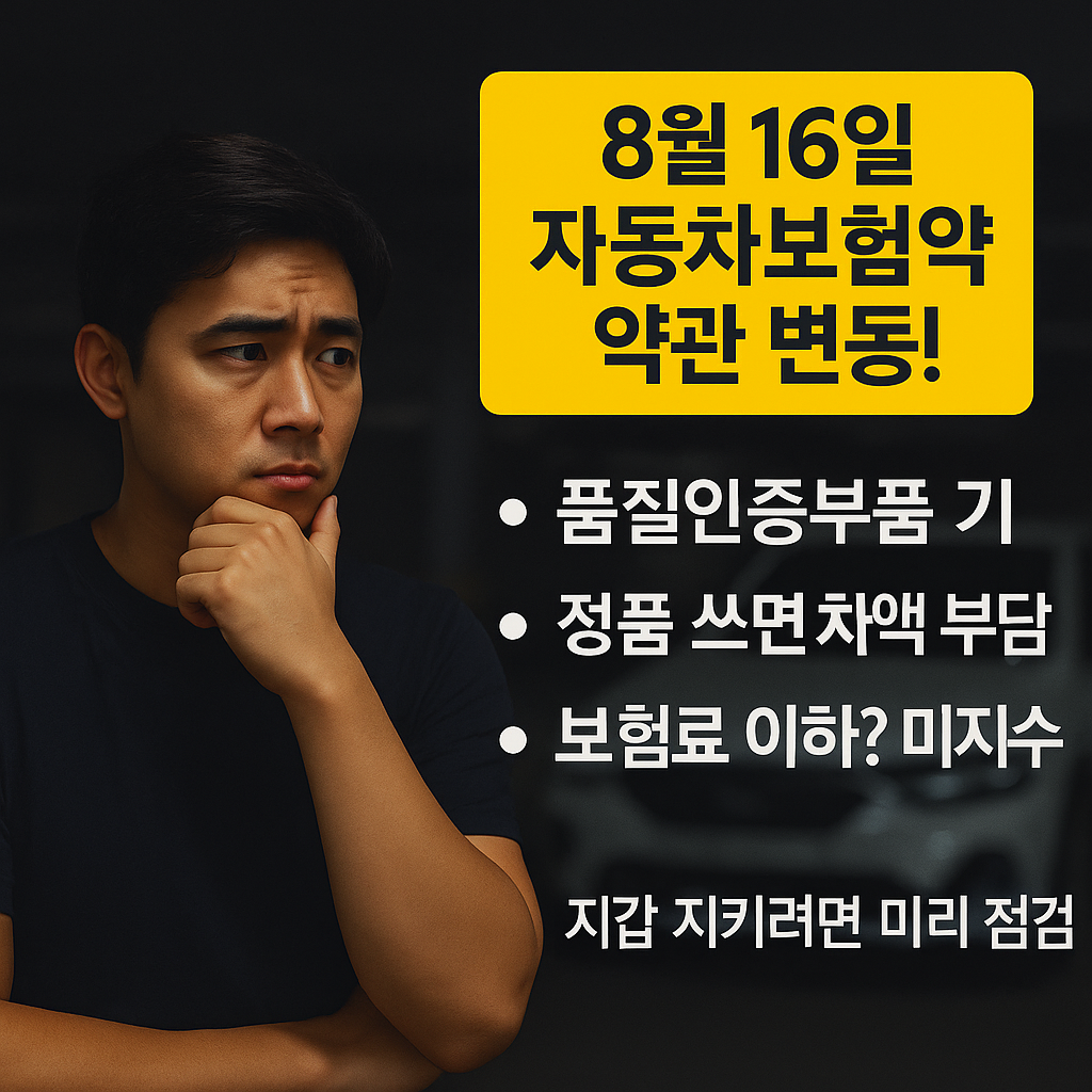 다음 달부터 자동차 보험 약관이 바뀐다는 소식, 혹시 들으셨나요? 8월 16일부터 차 수리 시 보험금 지급 기준이 제조사 정품 부품에서 '품질인증부품'으로 변경됩니다. 이는 곧 더 저렴한 부품을 기준으로 보험금을 받게 된다는 의미인데요. 갑작스러운 이러한 변화에 많은 운전자분들이 혼란스러워하고 있습니다. 과연 이번 개정이 여러분의 자동차 생활에 어떤 영향을 미칠지, 그리고 어떻게 대비해야 할지 자세히 알려드릴게요.