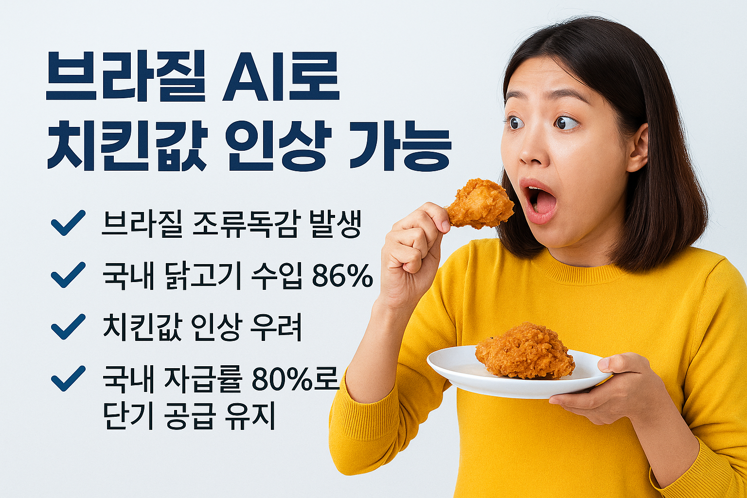 2025년 브라질에서 발생한 고병원성 조류인플루엔자(AI) 여파로 국내 치킨값 인상 우려가 커지고 있습니다. 세계 최대 닭고기 수출국인 브라질에서 상업용 농장에 처음으로 AI가 발생하면서 우리나라 닭고기 수입에도 비상이 걸렸는데요. 과연 이 사태로 정말 치킨 가격 인상이 현실화될까요? 이번 포스트에서는 브라질발 조류독감 사태가 국내 닭고기 수급에 미치는 영향과 치킨 가격 상승 가능성을 살펴보겠습니다. 주요 치킨 프랜차이즈 브랜드별 상황과 소비자에게 미칠 파장까지 함께 알아봅니다.