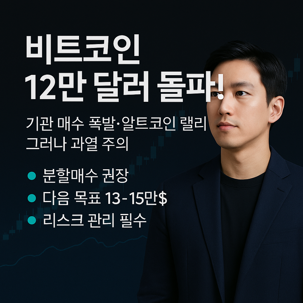 - 볼린저 밴드 (Bollinger Bands): 비트코인이 연일 신고가를 경신하고 12만 달러를 돌파했다는 점은 가격이 볼린저 밴드 상단 밴드를 따라 움직이는 '밴드 워크' 현상을 보일 가능성이 높습니다. 이는 강력한 상승 추세의 전형적인 모습입니다.