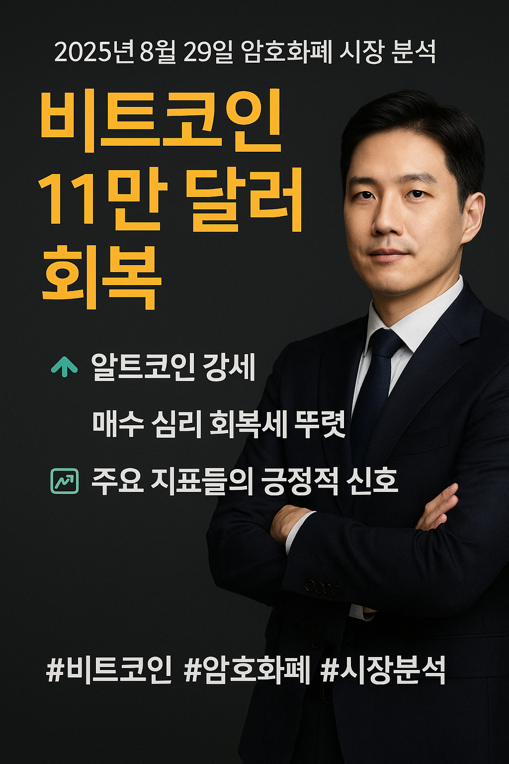 2025년 8월 29일 암호화폐 시장 분석: 비트코인 11만 달러 재탈환과 알트코인 랠리 가능성